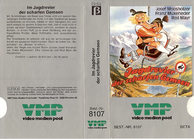Jagdrevier der scharfen Gemsen [Full Movie]: Jagdrevier Der Scharfen Gemsen Vmp Glasbox Deutsche Filme Videokassetten Aller Genres Ohne Indizierte Film Retro Shop De Jagdrevier der scharfen Gemsen [Full Movie]⇌: Jagdrevier Der Scharfen Gemsen Movie 〖DeuLeu!〗 aka (Oh Schreck mei Hos' is weg, Mei Hos' ist in Heidelberg geblieben 1975) "About the film: Mr. Shimenger receives from his brother inherited the hotel. Then he flies to Germany, settling there as an ordinary guest, and finds out that his hotel has a reputation as a brothel ..." film genres: Comedy.